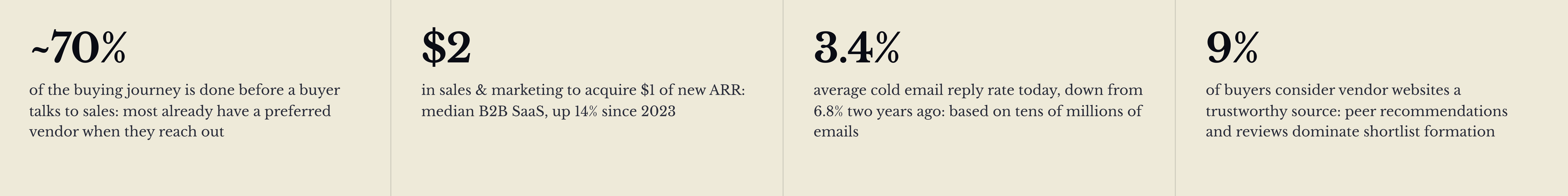 Only 9% of buyers consider vendor websites a trust worthy source. And buyers spend maybe 5 to 6% of their total purchase journey with any individual sales rep. The other 94 to 95% happens somewhere you can't see, can't pixel, and can't sequence into.